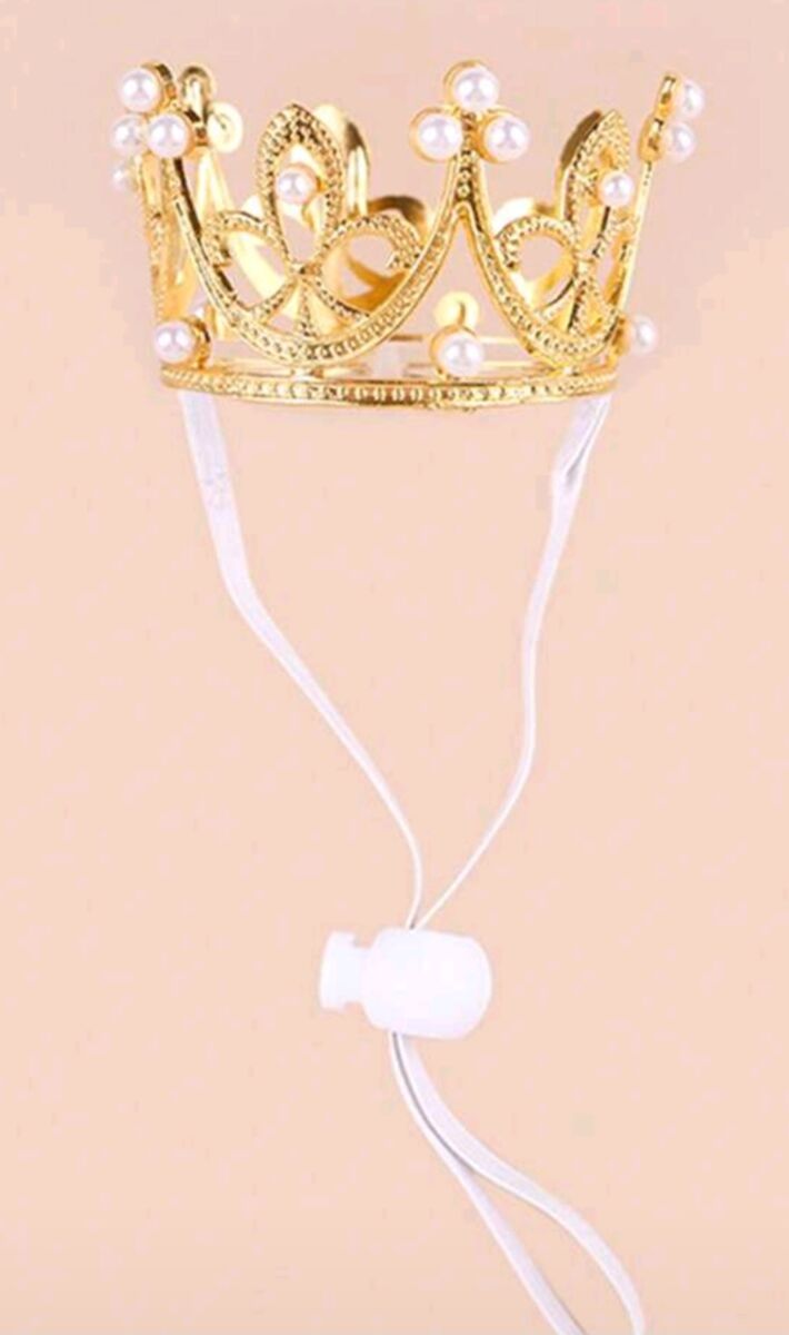 Preciosa corona dorada y perlas  con sujetador ajustable